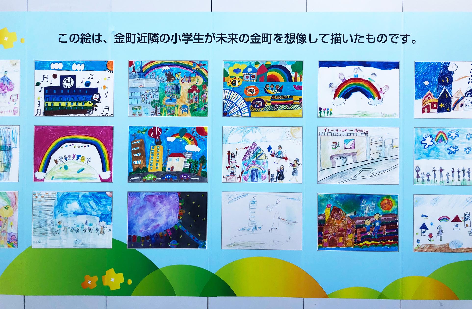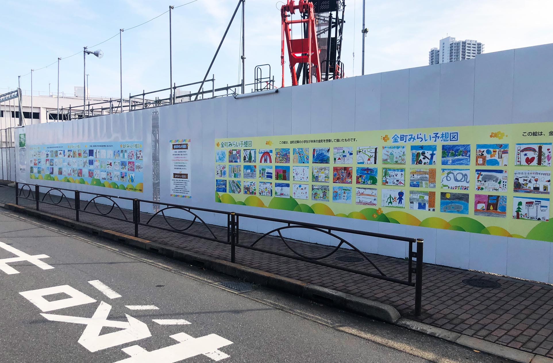 金町近隣の子どもたちが描いてくれた絵を、東金町一丁目西地区市街地再開発事業の北側仮囲いフェンス(旧イトーヨーカドー駐車場周辺)へ掲示しました。