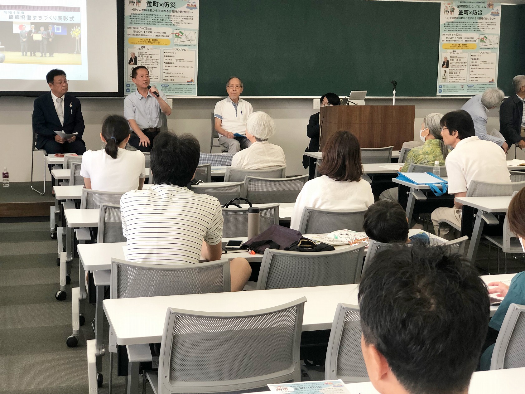 講師の松尾先生、葛西先生からは、自治体タイムラインやコミュニティづくり等、身近な防災の重要性をお話しいただき、その後のパネルディスカッションでは各自治会長を交えて熱のこもった意見交換が行われました。
